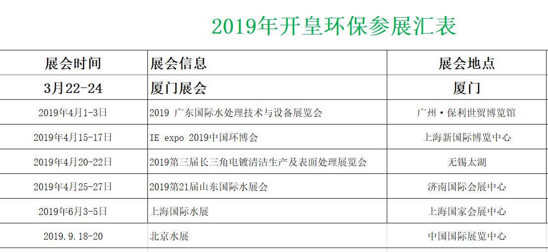 > 2019年 开皇环保参展汇总