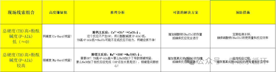 TH高 + P-Alk高→ 重点查镁硬 (Mg-Hard)残留 & NaOH投加/反应!